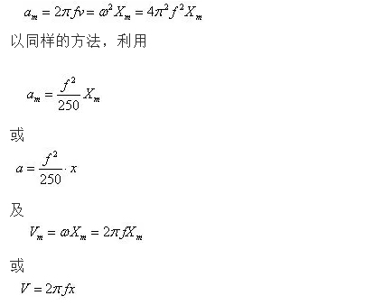 因此在根據(jù)上式確定了加速度區(qū)域的激振力和已知試驗加速度幅值a后,用下式a=2πfv即可計算出此試驗負載下的加速度區(qū)和速度區(qū)的交越點,然后繼續(xù)用下式V=a/2πf計算出該交越點以下速度區(qū)內(nèi)頻率點各對應的速度幅值的大小。當計算值小于初步選定的振動臺的最大速度幅值時,試驗可行;選型得以確認,反之則應重新選型。